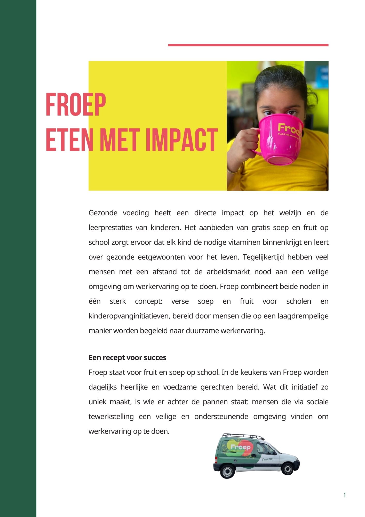 Froep combineert 2 noden in één sterk concept: verse soep en fruit voor scholen en kinderopvanginitiatieven, bereid door mensen die op een laagdrempelige manier worden begeleid naar duurzame werkervaring.